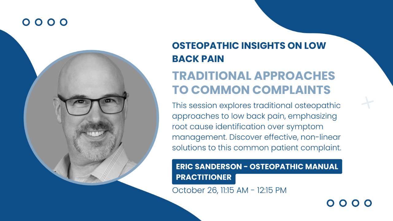 ☑️ Examine the traditional osteopathic approaches to low back pain with Eric Sanderson, OMP.